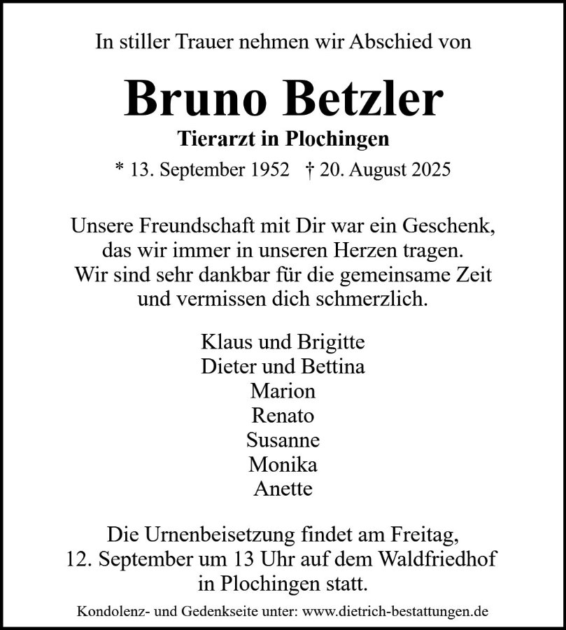 Bruno Betzlergestorben am 20. August 2025