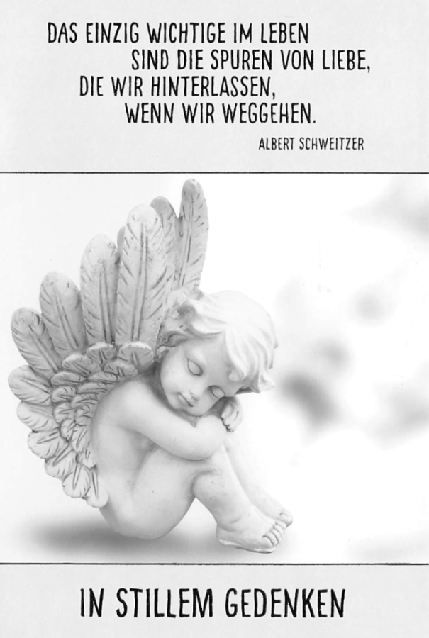 Du hinterlässt viele Spuren von Liebe in Deinem langen Leben … Hilfsbereit und stets freundlich warst Du überall zur Stelle, wo Du gebraucht wurdest, pflegtest selbstlos Eltern, Mann, Freunde und Bekannte und hinterlässt in Deinem Umkreis eine große Lücke.