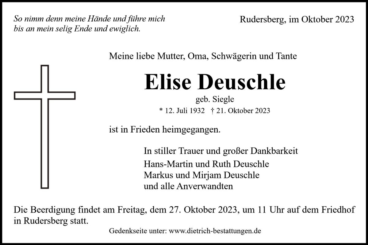Elise Deuschlegestorben am 21. Oktober 2023