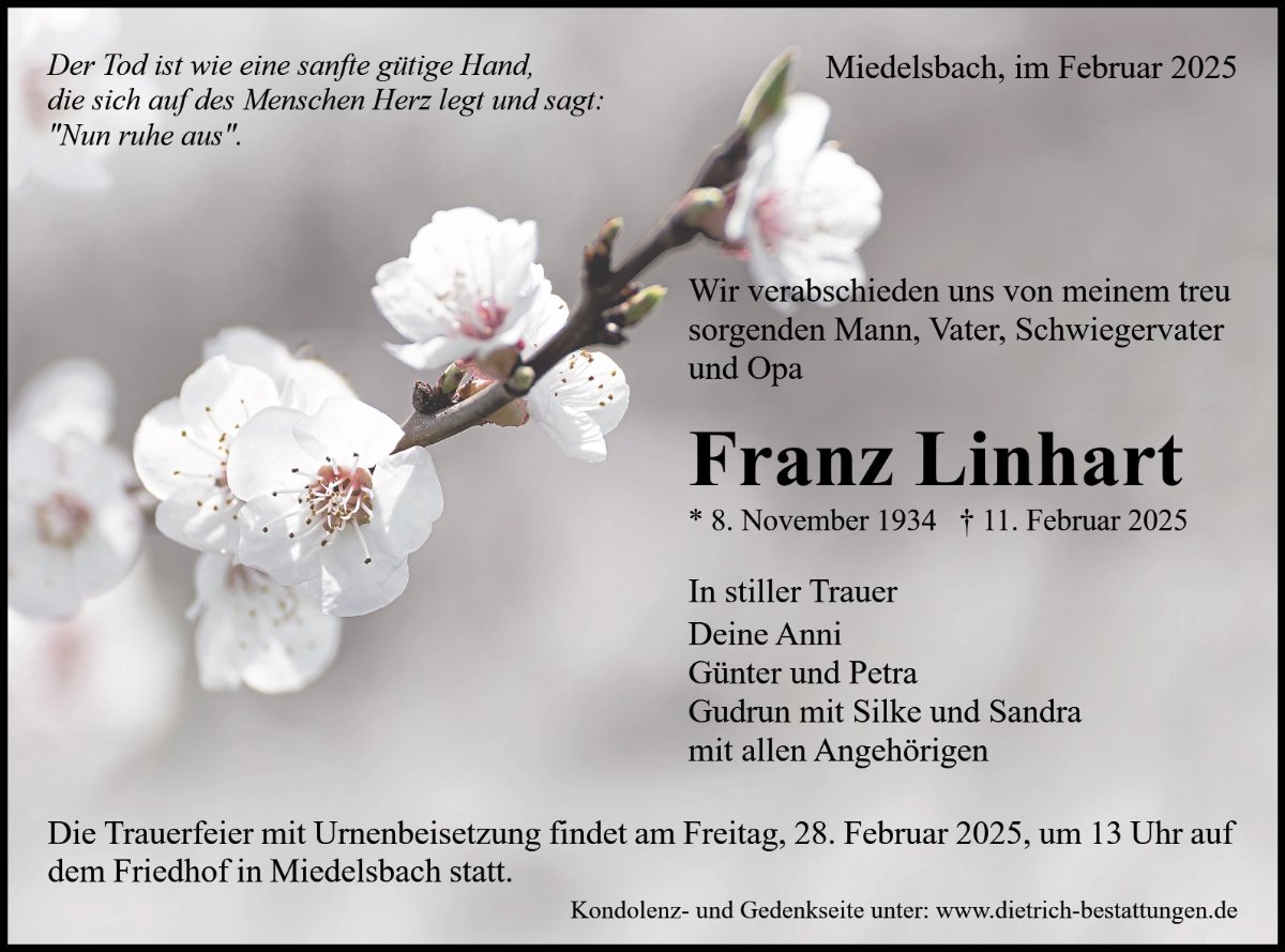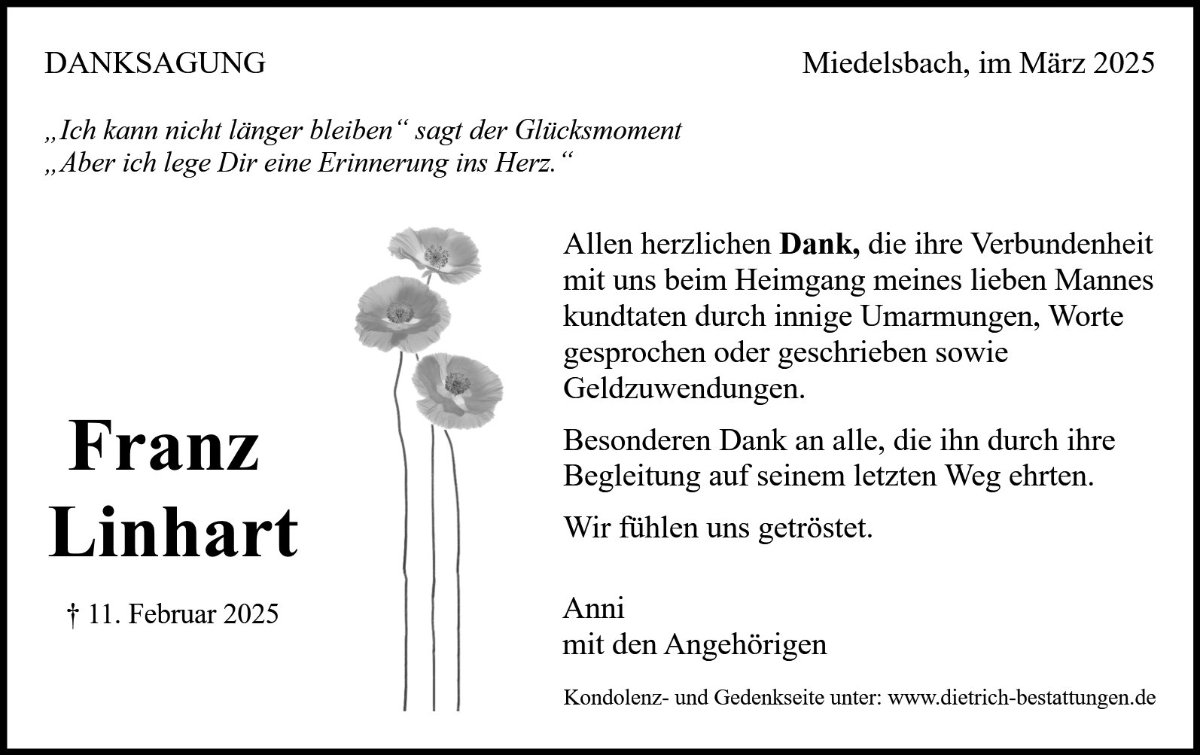 Sprechen Sie im Kondolenzbuch den Hinterbliebenen Ihr Beileid aus und teilen Sie persönliche Gedanken und Erinnerungen mit anderen.