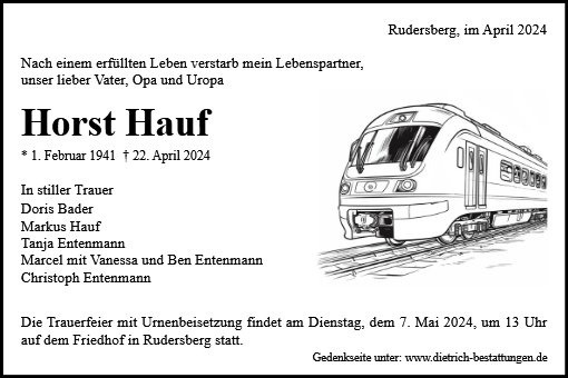 Den Angehörigen gilt unsere herzliche Anteilnahme.