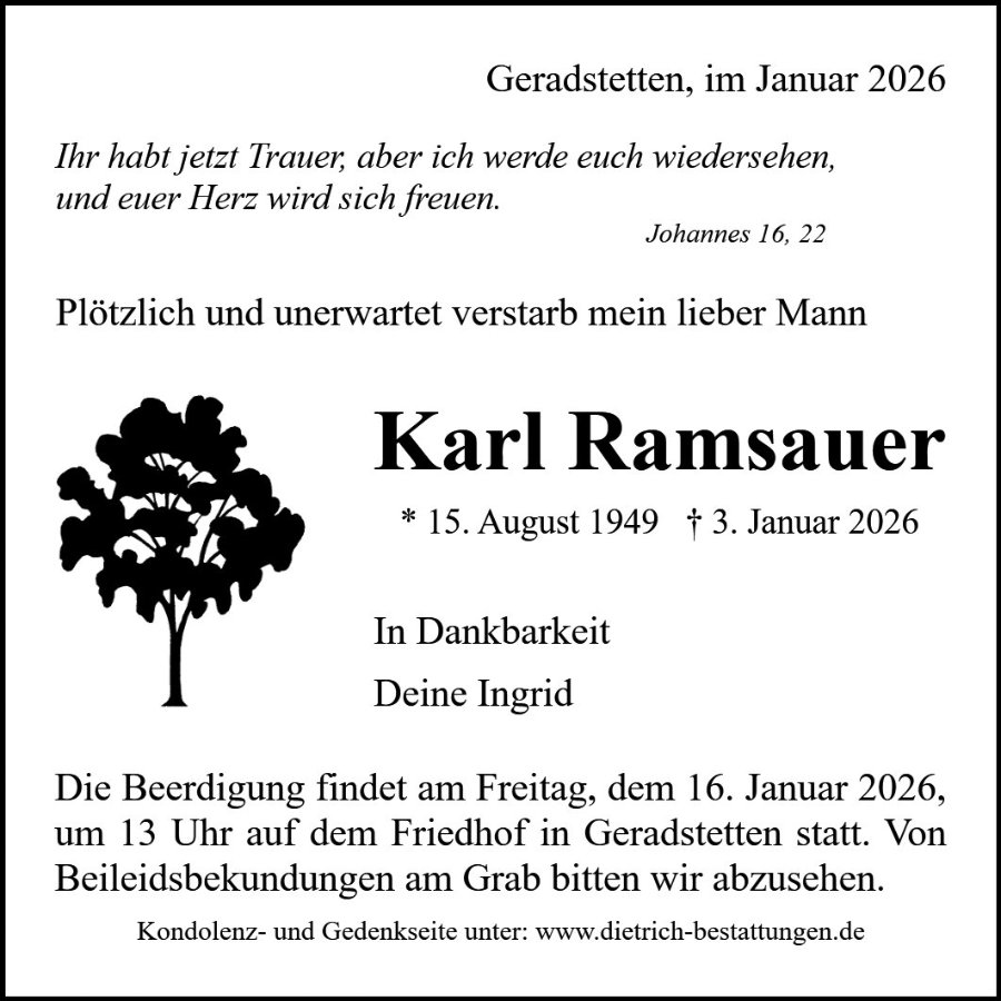 ich trauere mit dir um deinen lieben Mann Karl. Erst vor kurzem haben wir noch miteinander gesprochen. Es ist schwer zu fassen, dass Karl nicht mehr unter uns ist.