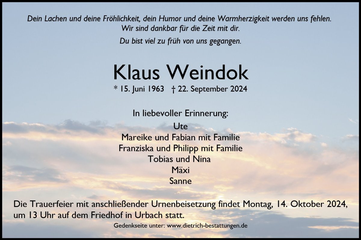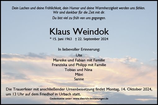 Mein allerherzlichstes Beileid und mein tiefstes Mitgefühl gelten dir, liebe Ute und deiner Familie.