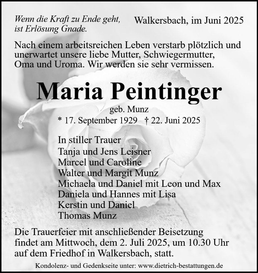 Maria Peintingergestorben am 22. Juni 2025