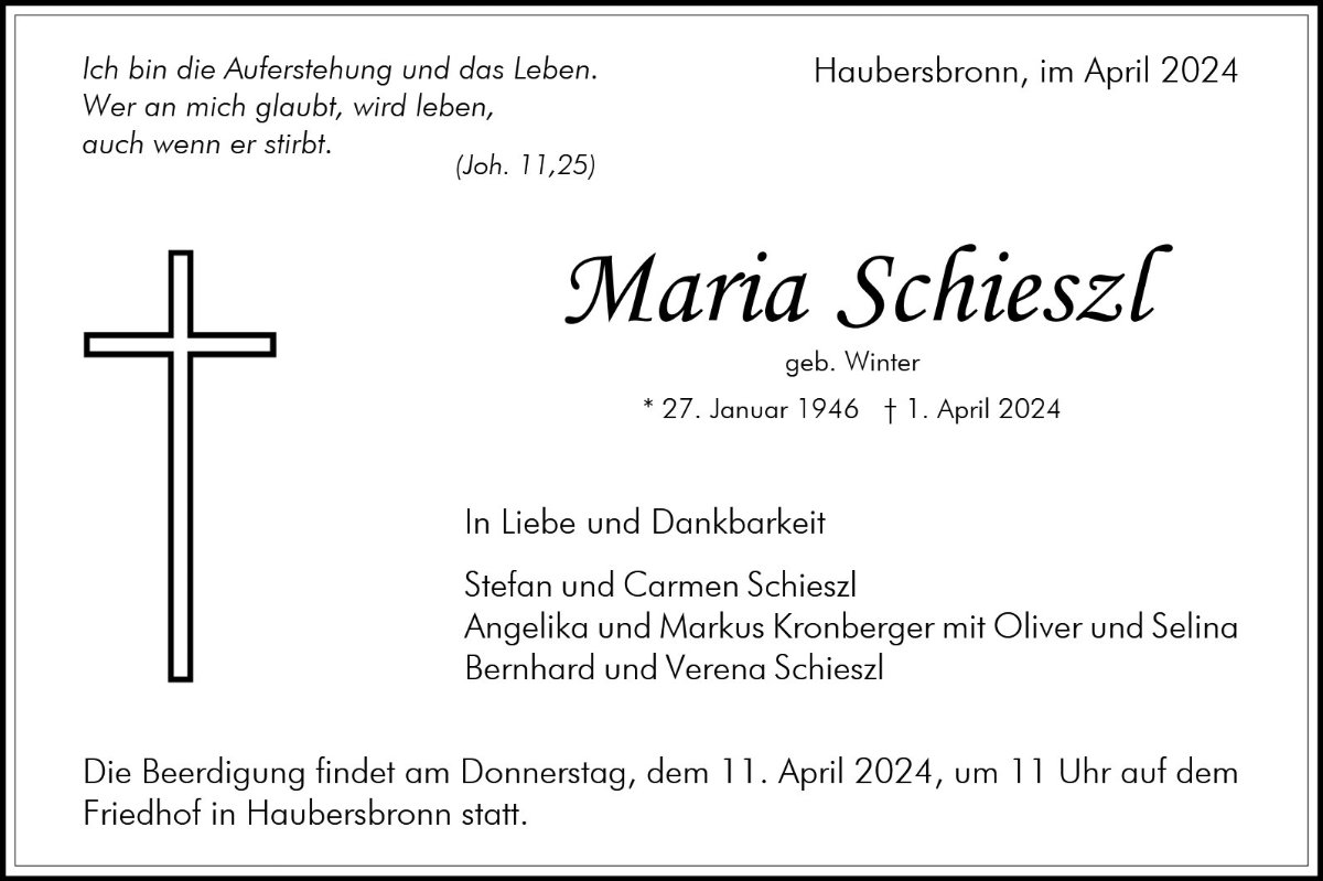 Maria Schieszlgestorben am 1. April 2024