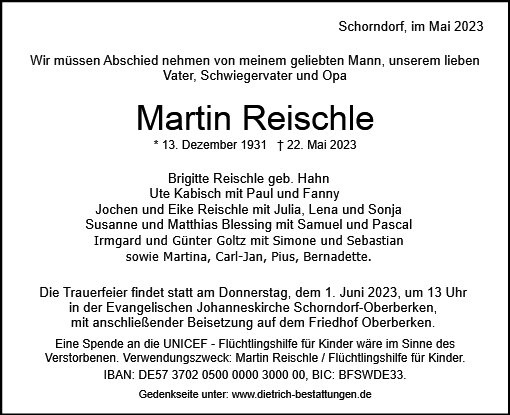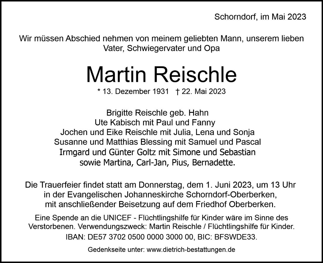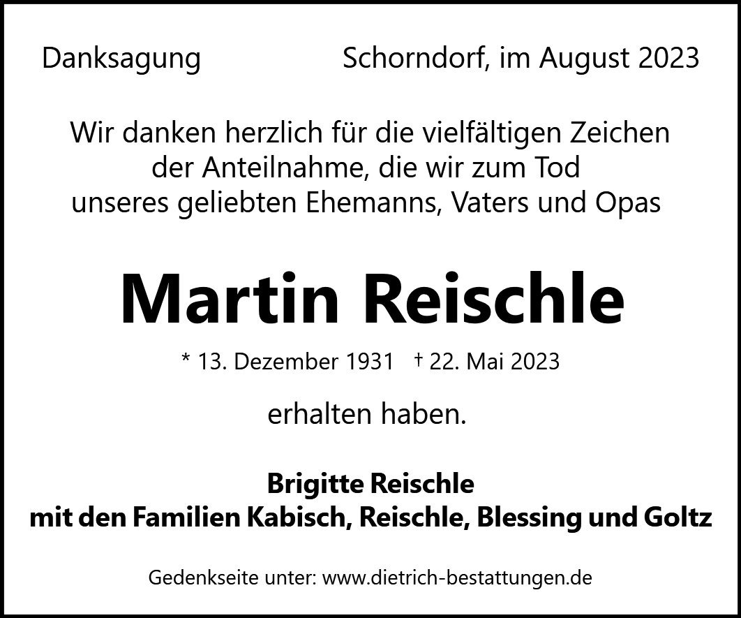 Ihr Verstorbener wird mir immer in bester Erinnerung bleiben. Wie er bin ich in Stuttgart geboren. 1969, ich war 13, kam ich ans Schorndorfer Gymnasium. Die meisten Lehrer habe ich inzwischen vergessen, nicht aber Herrn Reischle. Ihm verdanke ich die Entdeckung der französischen Sprache, die danach so wichtig für meine weitere Existenz wurde, denn ich verlegte meinen Lebensmittelpunkt nach Tunesien.