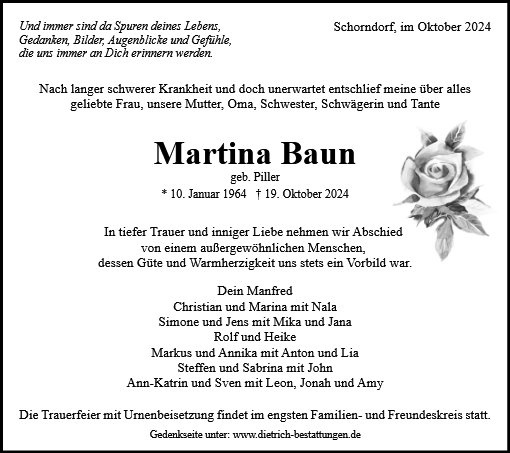 Ein einziger Mensch fehlt und alle Welt ist leer. Ruhe in Frieden liebe Martina. Ich werde dich nie vergessen.