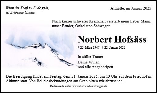 Ich hsbe erst jetzt entdeckt dss Norbert verstorben ist. Es tut mir so leid für dich. Wir teilten viele schöne Erinnerungen in den fast 50 vergangenen Jahren.