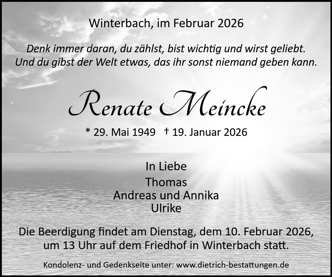 "Was ein Mensch an Gutem in die Welt hinausgibt, geht nicht verloren. In unseren Herzen lebst Du weiter."