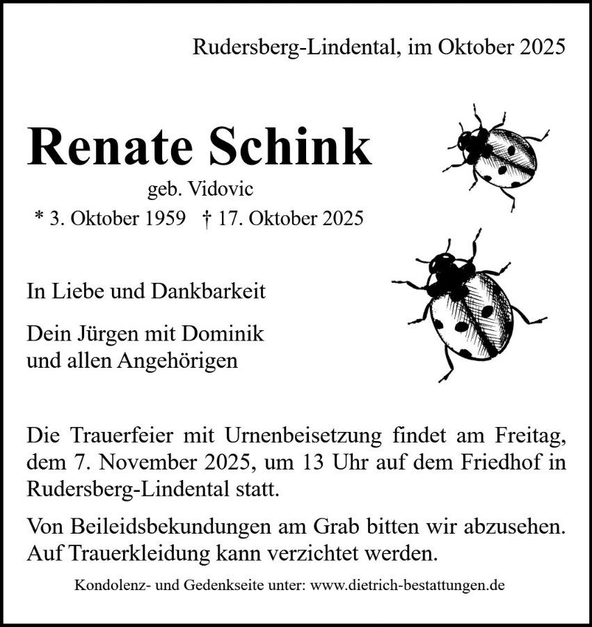 Renate Schinkgestorben am 17. Oktober 2025
