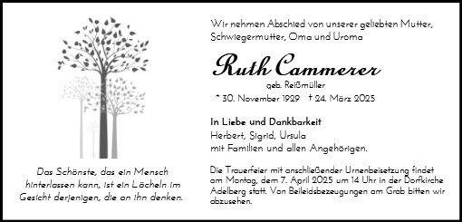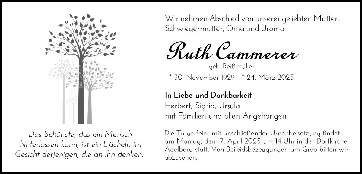 Mein aufrichtiges Beileid an die Familie und Ihnen Frau Cammerer ein schönes Wiedersehen mit dem vorausgegangenen Teil der Familie.