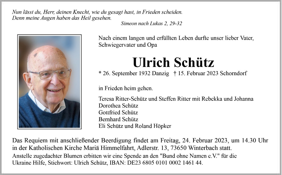 gestorben am 15. Februar 2023 in Schorndorf