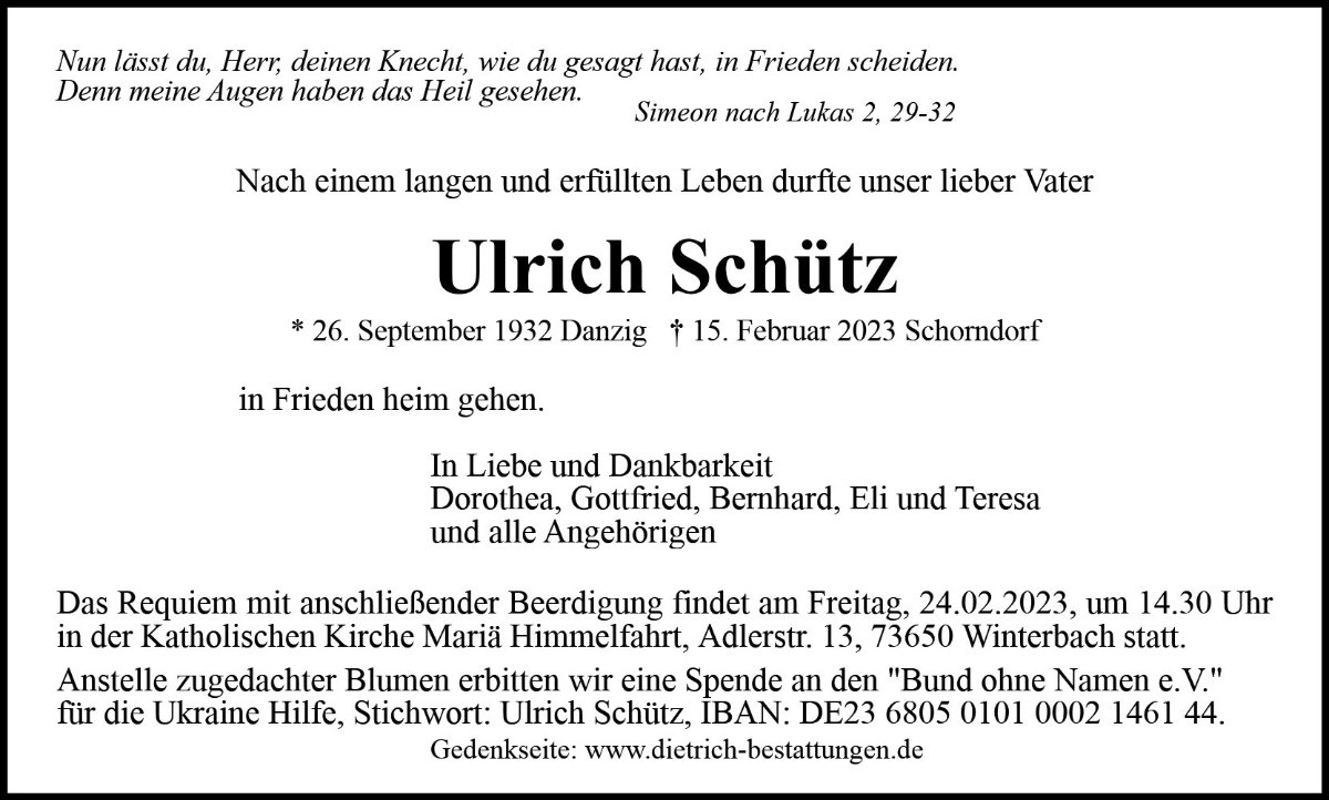 Ulrich Schützgestorben am 15. Februar 2023