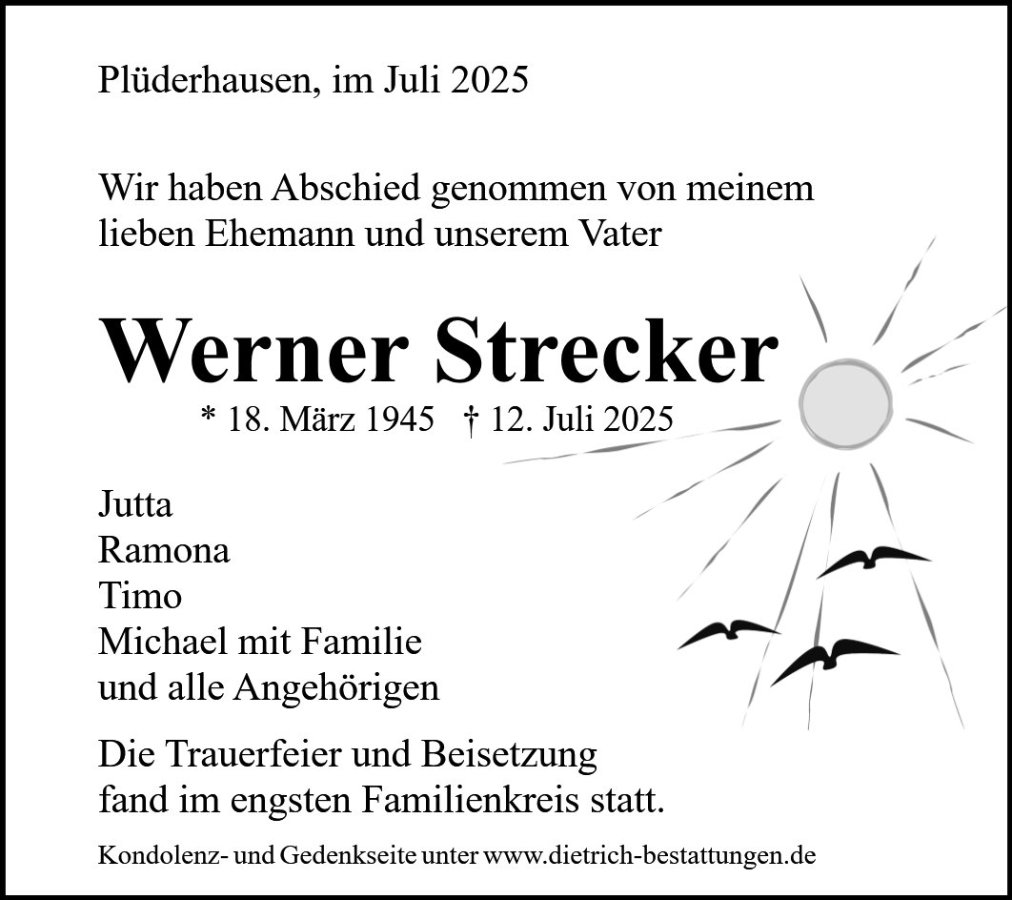 Auch von uns ein letzter Gruß an unseren verstorbenen Onkel Werner.